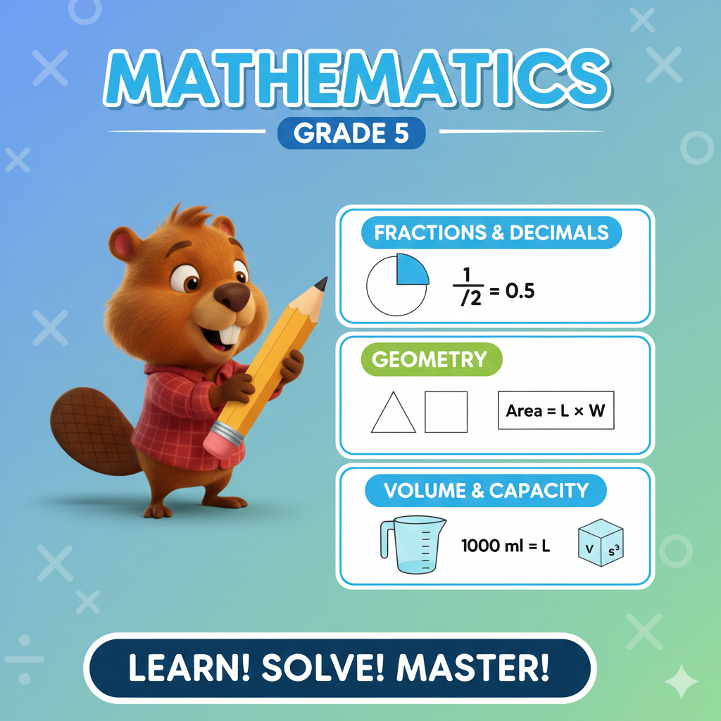 At Grade 5, learners are introduced to triangles as basic plane shapes in Geometry. Pupils learn the meaning of a triangle, identify its parts (sides, angles, and vertices), and explore basic properties of triangles. They classify triangles according to their sides as equilateral, isosceles, or scalene, using simple measurements and visual examples. Emphasis is placed on recognition, correct mathematical vocabulary, and real-life examples rather than formal proofs.